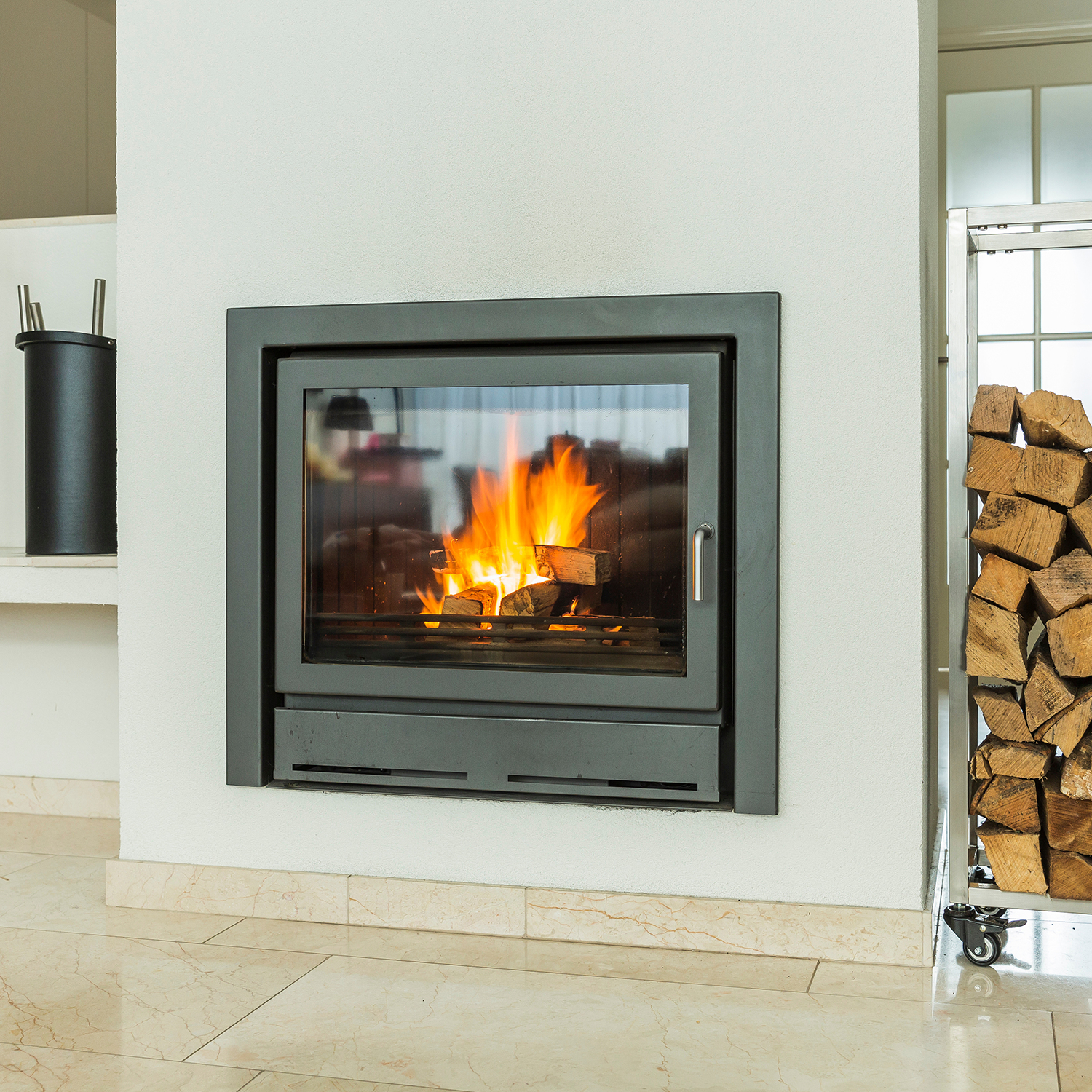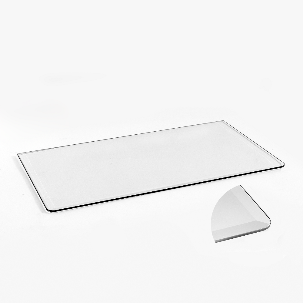 . Stikls pie krāsns/kamīna ir izgatavots no 6 mm bieza rūdīta stikla. Trīs stikla malas ir apstrādātas ar faceti. Iespējams izvēlēties caurspīdīgu, pelēku vai bronzas krāsas stiklu.