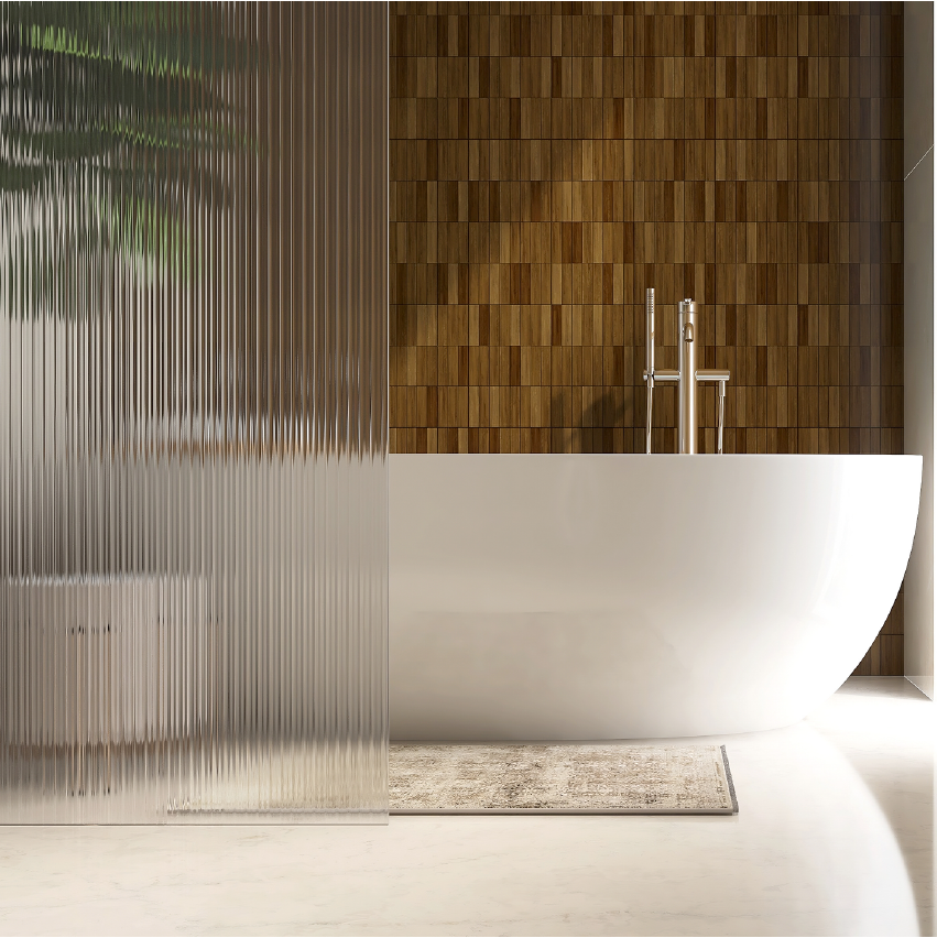 Vienā dekoratīvā stikla pusē ir raksts ar dažādām virsmas formām. Šādus stiklus izmanto vietās, kur nepieciešams privātums. Stikls ir ļoti iecienīts arī kā dizaina elementu daļa.